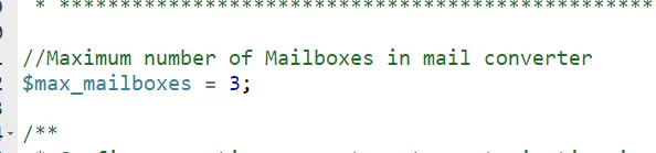 推測ですが、メールコンバータによる処理がメールの受信件数によってはサーバ側で重い処理になる可能性があるため個数の制限を加えたのではと思われます。これから解説する設定個数の拡張は、無条件にやっていいわけではなく業務量(1回のあたりのメールの処理量)によって調整する必要があります。