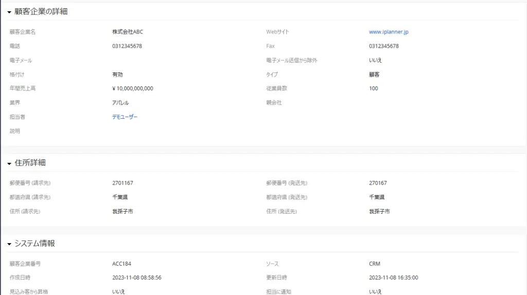 最大で3つまでのフィールドを使って、データの重複チェックを行えます。例えば、顧客担当者で、メールアドレスを重複チェックキーに設定すると同じメールアドレスで登録しようとするとアラートが出力されます。