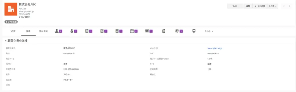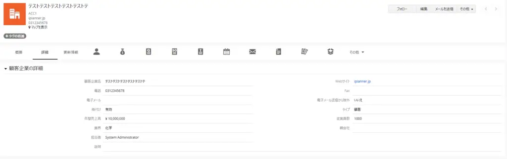 こちらは顧客企業の概要ページの画像になります。ラベル名と実際のデータの表示フィールドの間の空白が大きいので見づらさを感じる人もいるかもしれませんね。